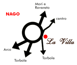 Arrivati a Nago, si procede dritti fino alla rotatoria, quindi si entra in paese e